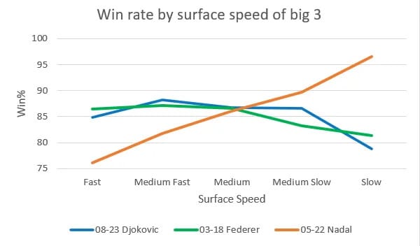 Roger, Nadal, Djokovic Vs. Surface Speed